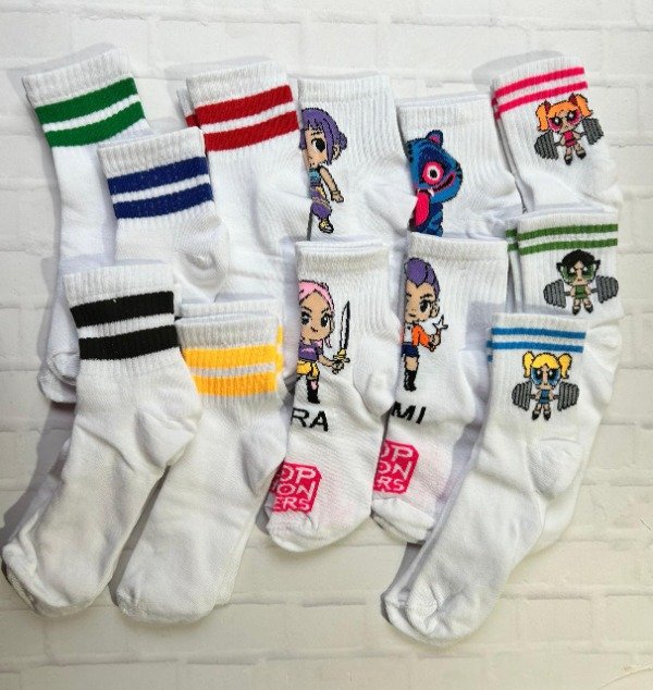 12 pares de medias surtidas , motivos Old School, K- pop y superpoderosas abarcan de un 36 a un 44