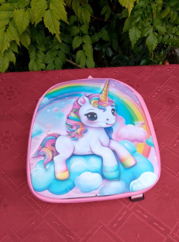 Mochilita infantil con tiras regulables de 32cm de alto x 30 CM de ancho y 10 de profundidad.
